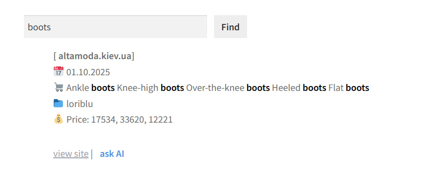 Enter a search query to find the products or services you need. For example, for groceries — “fish”, for clothing — “shoes”.